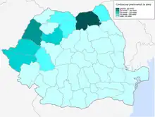 - This is still more rural than Romania as a whole, which was 52.7% urban in 2002. Populaţia, gospodăriile şi locuinţele la recensământul din 2002 Archived 2008-02-19 at the Wayback Machine; accessed April 8, 2008.
