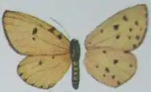 The wingspan is 29–38 mm for males and 34–44 mm for females. Subspecies P. t. tropicalis has two generations per year, with adults on wing in October and November and from January to April. Subspecies P. t. fuscipunctata has continuous broods from November to April.[2]