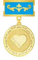 The People’s Gratitude (the Halyk Algysy Medal) is awarded to the civilians of the Republic of Kazakhstan for their fruitful work in the fields of education, health care, social protection and for their significant contribution to COVID-19 pandemic response.[2]