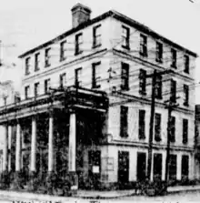 The People's Building at 18 Broad St. was Charleston, South Carolina's first "skyscraper", erected in 1910 and 1911 at a cost of $300,000. It was designed by a Swedish architect, Victor Frohling of Thompson & Frohling, of New York[1] and built by both Simons-Mayrant of Charleston and also the Hadden Construction Co. Construction began on December 7, 1909.[2] The pile driving so weakened a nearby residence that the People's Building & Investment Co. had to buy it.[3][4] The structure is a steel framed building with iron framing whose engineer was D.C. Barbot.[5] Work continued throughout early 1910.[6][7][8] The construction of the building became a popular spectacle for residents to watch.[9] An American flag was placed atop the building's frame when it was topped out in late April 1910.[10] The owners of the building considered installing a rooftop garden to take advantage of the superb views from the building.[11]