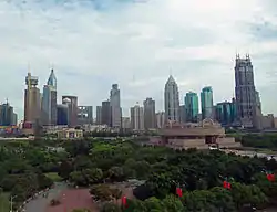 People's Park (Chinese: 人民公园; pinyin: Rénmín Gōngyuán) is a public park in Huangpu District of central Shanghai.[1] It is located south of Nanjing Road, a major shopping street, and north of People's Square.[2] Originally the northern part of the Shanghai Race Club's race course, the park was created in 1952. With several major museums and Shanghai's main shopping street nearby, it is one of the top tourist destinations in the city.