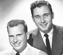 Aylesworth and Peppiatt relocated to the United States in 1958 and got work writing for 'The Andy Williams Show.[1] They had worked together on The Jimmy Dean Show and wondered why a show hosted by a country music star didn't feature the country music more prominently.[2] Aylesworth's 2010 book The Corn Was Green: The Inside Story of Hee Haw published by McFarland & Company told how he and Peppiatt came up with the idea for Hee Haw after seeing "country banter" between Charley Weaver and Jonathan Winters on The Jonathan Winters Show, and seeing that the shows atop the Nielsen ratings included The Andy Griffith Show, The Beverly Hillbillies, Gomer Pyle, U.S.M.C., Green Acres and Petticoat Junction, along with Rowan & Martin's Laugh-In and the duo conceived immediately of the format of country variety resulting in one of the longest-running series in television history, Hee Haw.[1][3] Originally a summer replacement for The Smothers Brothers Comedy Hour, Hee Haw was an immediate ratings winner throughout that first summer and was permanently added to the CBS schedule in December 1969.[2] Co-hosted by Roy Clark and Buck Owens, the hour-long program featured regulars Archie Campbell, Grandpa Jones, Minnie Pearl, Junior Samples, Lulu Roman and Canadians Gordie Tapp and Don Harron.[2][3] Comedian and frequent Peppiatt & Aylesworth collaborator Jack Burns was also a writer and major contributor in the early years of the show. There was also a spinoff sitcom "Hee Haw Honeys". One of the stars of the series was a young Christian music singer, Kathie Lee Johnson (Gifford) before she married Frank Gifford.