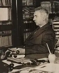 During the Second World War he left his social democratic background, and joined the Communist part of the Norwegian resistance movement.[1] He was arrested, and imprisoned in Grini concentration camp from 30 January 1945 to the war's end.[5] After the war he represented the Communist Party in Oslo city council for two terms; from 1945 to 1951. He also wrote the history of his own school, Lilleborg skole gjennom 50 år 1898–1948.[1] He received the Medal of St. Hallvard in 1956.[6] He died in June 1960 in Oslo.[1]