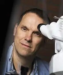 Per Uhlén, born in 1969 in Uppsala, is a Swedish researcher in cell and molecular biology and professor of cell signaling at Karolinska Institute in Stockholm. Uhlén conducts research about cell signaling and how different cues affect important biological processes for cancer and development, such as cell division, cell differentiation and cell death.[1][2][3] Uhlén is also conducting research using three-dimensional (3D) imaging with light sheet fluorescence microscopy and tissue clearing to map, characterize, and diagnose intact tumor samples.[4][5]