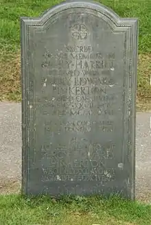 In 1909, aged 54, Pinkerton married 41-year-old Emily Harriet, spinster daughter of Rev. James Richard Woodgates, rector of Putley, Herefordshire. They lived at Red Lodge, Happisburgh, Norfolk. Pinkerton died on 31 August 1946, aged 91, at Ealing House, Porthleven, Cornwall.[9] and was buried at Porthleven Cemetery alongside his wife. They had no issue.[1][2]