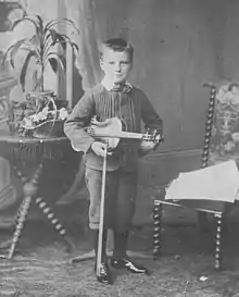 In 1895 Miles suggested to Lionel Tertis (then also a violin pupil of Wessely at the RAM) the idea of switching to the viola, in order for them to form a string quartet.[5] His name appeared several times in The Musical Times in the late 1890s connected with performances of his own compositions and for those of other contemporaries. According to a brief biography in one of these articles in 1899, he won the Hine Exhibition composition prize in 1893, the Walter MacFarren Scholarship in 1896 (awarded 8 January 1896)[2] Also in 1896 he received a silver medal (presented annually to the most distinguished student at the Royal Academy of Music, the Royal College of Music, or the Guildhall School of Music, in rotation, the recipient nominated by the principal or director of the school) from the Worshipful Company of Musicians.[6] He won the first Sauret prize in 1897, plus the prestigious Charles Lucas (musician) Medal for composition in mid summer 1898. In 1899 he was awarded the Mendelssohn Scholarship, which was presented to him by Sir John Stainer.[3][4] This enabled the student to study abroad for 3 years with noted teachers of the day. Between 1899 and 1903, Percy studied in Vienna, Berlin, Karlsruhe, Paris and Milan. As a student he also performed alongside his violin teacher Hans Wessely as second violin for chamber music concerts across London.[7]