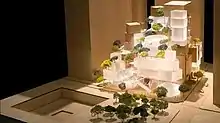 The Lower Manhattan Development Corporation (LMDC) announced on October 12, 2004, that Gehry Partners LLP and Snøhetta, an architectural firm from Norway, would design the Performing Arts Center.[1][2][3] Gehry's proposal, which incorporated a boxlike design, would have housed the Joyce Theater, as the Signature Theater Company had dropped out due to space constraints and cost limitations.[3]