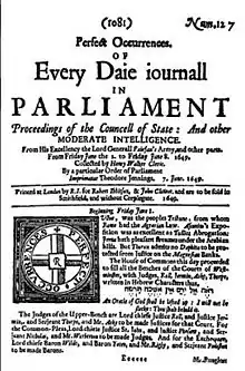 Perfect Occurrences was a weekly newspaper edited by Henry Walker (cleric) which became the semi-official mouth piece of Parliament in 1647.[1]