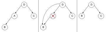 Deletion is the process whereby a node is removed from the tree. Only certain nodes in a binary tree can be removed unambiguously.[30]