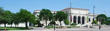 Detroit has a long theatrical history, with many venues dating back to the 1920s.[7] The Detroit Fox Theatre (1928) was the first theater ever constructed with built-in film sound equipment. Commissioned by William Fox and built by architect C. Howard Crane, the ornate Detroit Fox was fully restored in 1988. It is the largest of the nation's Fox Theatres with 5,045 seats.[8][9] The city has been a place for operatic, symphonic, musical and popular acts since the first part of the twentieth century. Portions of Leonard Bernstein's music for West Side Story, produced by Detroit's Nederlander Organization, were composed on the piano that resides in the library at Cranbrook in the Detroit suburb of Bloomfield Hills. David T. Nederlander's career began after purchasing a 99-year lease on the Detroit Opera House. His son, the organization's chairman, James M. Nederlander, also a Detroit native, coproduced over one hundred famous theatrical classics, including West Side Story, Hello, Dolly!, The King and I, and Fiddler on the Roof.[10] Today, the Nederlander Organization operates Detroit's Fisher Theatre, the Detroit Opera House, and several theaters in other major cities on the Broadway theatre circuit. Organizations such as the Mosaic Youth Theatre support the city's theater community.[11]