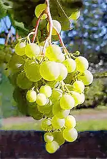 Pearl of Csaba (Csabagyöngye in Hungarian) is a white variety of grape. It was created in 1904 by the Hungarian viticulturalist Adolf Stark, presumably by crossing Madeleine Angevine × Muscat Courtillier (= Muscat Précoce de Saumur).[1] Some sources instead state the parent varieties as Bronner x Muscat Ottonel, but this is seen as less likely. The variety's name was taken from the city Békéscsaba, which is also called Csaba for short.