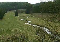 The Perlenbach Valley (German: Perlenbachtal or Perlbachtal) is the valley of the Perlenbach stream in the Eifel mountains in the countries of Belgium and Germany. The Perlenbach itself is a tributary of the Rur. The Perlenbach Valley is host to two outstanding, cultural-historical nature reserves along the state border which have a total area of 398 ha.
