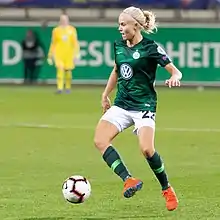 Pernille Mosegaard Harder (born 15 November 1992) is a Danish professional footballer who plays as an attacking midfielder or a forward for FA Women's Super League club Chelsea and the Denmark national team. In September 2020, she became the world's most expensive female footballer following her transfer from VfL Wolfsburg to Chelsea,[1] but the record was broken in September 2022 by Keira Walsh when she was signed to Barcelona.[2] She is considered one of the best footballers in the world.[3][4]