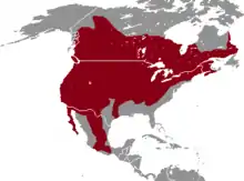 Peromyscus maniculatus are found in all throughout eastern North America.[7] The majority of deer mice nest high up, in large hollow trees. The deer mouse nests alone for the most part but during the winter will nest in groups of 10 or more.[25] Deer mice, specifically the prairie form, are also abundant in the farmland of the midwestern United States.[5] Deer mice can be found active on top of snow or beneath logs during the winter seasons.[17] In northern New England deer mice are present in both coniferous and deciduous forests.[26] Deer mice are often the only Peromyscus species in northern boreal forest.[27] Subspecies differ in their use of plant communities and vegetation structures. There are two main groups of deer mouse: the prairie deer mouse and the woodland or forest deer mouse group.[28]