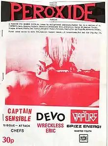 Peroxide was a punk zine published and edited during the late 1970s by Andrew Thomas, Quentin Cook (a.k.a. Norman Cook) and Ian McKay). Inspired by punk zines such as Chainsaw, Peroxide lasted only two issues, with McKay being ousted by Cook after the first issue. Importantly however, the publication is noteworthy as it served to provide Cook with his first significant point of connection with the professional music business (his contact with Adam Ant being a notable example), and for both McKay and Thomas, their first experiences of publishing. Whilst Cook remained in the music business, McKay became a writer on the visual arts and culture, while Thomas moved into the business sector; he is currently the publisher of Communicate magazine and owner of Cravenhill Publishing.