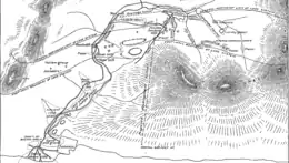 The Alaska-Gastineau Mine was located within the Silver Bow Basin. Its concentrating plant was situated near Thane.[4] The mine had a 2 miles (3.2 km) shaft running through Mount Roberts that reached the Perseverance Mine near Gold Creek.[5] It adjoined the Alaska-Juneau Mine.[6] The mine's low-grade ore is situated on a mountain above the Gastineau Channel. Its ore body covered approximately 2,000 acres (810 ha), more than 2 miles (3.2 km) in length, with 20 miles (32 km) of tunnels and crosscuts. According to Jackling, the block of ore had at least 100,000,000 tons above sea level.[6] The property consisted of a group of claims whose lode system covered 11,000 feet (3,400 m).[2] It was operated on a 6,000-ton daily capacity.[7]