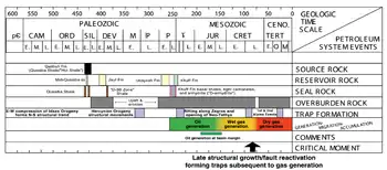 Four major tectonic events resulted in the formation of structural traps:[3]