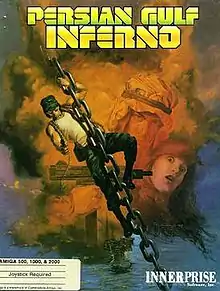 Persian Gulf Inferno (with a leading The on the title screen, but not the box cover) is a side-scrolling action-adventure game released for the Amiga in 1989, and the Atari ST and Commodore 64 in 1990.