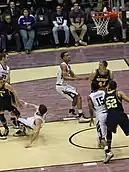 This rule let Don Otten set the NBA record for personal fouls in a regular-season game. He had eight fouls while playing for the Tri-Cities Blackhawks (now the Atlanta Hawks) against the Sheboygan Red Skins on November 24, 1949.[7] The rule was also invoked in a game between the Los Angeles Lakers and Cleveland Cavaliers on February 5, 2014.[8] With the Lakers down to five players due to injuries, when Robert Sacre fouled out, he remained in the game.[9]