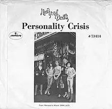 Mercury Records originally released "Personality Crisis" in 1973 as a double A-side single with "Trash" to coincide with the album's release. Promo singles of "Personality Crisis" were also distributed to radio stations. Following the band's break-up, it was rereleased by Bellaphon Records as a double A-side with "Looking for a Kiss" in 1978. In 1982, a 12" single of "Personality Crisis" & "Looking For A Kiss" b/w "Subway Train" & "Bad Girl" was released by Kamera Records. The same track listing appeared on the See For Miles Records CD single released in 1990.[4]