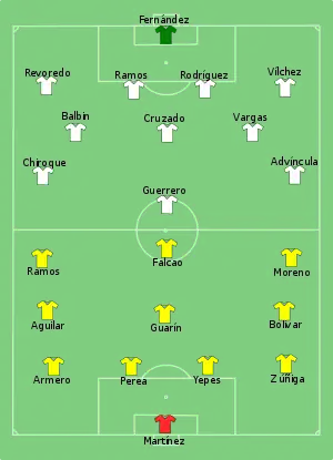 - "Perú empató 0-0 con Colombia y clasificó a cuartos de final". El Comercio Perú (in Spanish). 2015-06-21. Retrieved 2022-10-30.