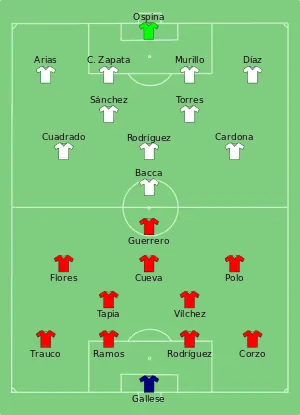 In the quarterfinals, they faced the Colombian team with which they tied 0:0 in regulation time, they were finally defeated 4:2 in the penalty shootout. With this result, Peru ranked fifth. The team's top scorers were Raúl Ruidíaz, Edison Flores, Christian Cueva and Paolo Guerrero with one goal each.