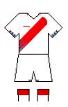The Peru national football team wore its first official kit at its formal debut in the 1927 South American Championship held in Lima.[3] Peru's kit comprised a white-and-red striped jersey (a thick vertical stripe running down the middle front and back, with two equally-thick vertical stripe on the sides), white shorts, and black socks.[7] Financial difficulties almost impeded Peru from organizing the tournament, but the Peruvian government of Augusto B. Leguía intervened to guarantee the tournament's financial sustainability.[8] Leguía's government promoted the development of football as the country's national pastime,[9] and Peruvian society at the time considered that the president sponsored the local football club Alianza Lima.[10] Peruvian sports historians debate Leguía's personal involvement with football, and with Alianza Lima in particular, but Pulgar-Vidal Otálora points out that it might not be mere coincidence that Peru's first official national football kit nearly identically resembled that of Alianza—its blue-colored stripes and shorts marked the only difference with the national kit.[7] Peru used this kit for six official matches, three at Lima's tournament and three at the 1929 South American Championship held in Buenos Aires.[7][11]