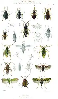 "Insects infesting potato crops": a plate from John Curtis's Farm Insects, 1860