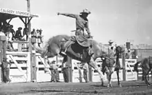 Pete Knight at the 1935 Calgary Stampede, riding Silver King