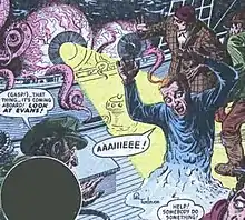 With the popularity of horror comics in the early to mid-1950s, Tumlinson produced a number of horror stories for Atlas titles including Astonishing, Journey into Mystery, Journey Into Unknown Worlds, Marvel Tales, Mystery Tales, Mystic, Strange Tales, and Uncanny Tales.[4] One story, "In the Dead of Night" by writer Hank Chapman and artist Tumlinson, appeared in issue #11 (Nov. 1951) of Suspense, an anthology based on the CBS radio program.[8]