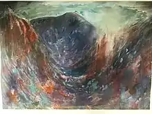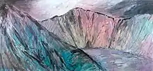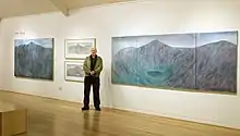 Peter Bishop has been invited to participate in many group exhibitions including London's Royal Academy of Arts Summer Shows and has held ten solo exhibitions, the most recent at MOMA Wales in 2012. His work is in public and private collections. In an Arts Review, Anthony Vettise wrote 'What is very striking is the searching quality of this artist's working process, one senses the struggle to find solutions through trial and error, the building of marks and colour and the reworking of ideas. Ultimately he searches for pictorial equivalents of personal experience of his chosen landscape. The experience is romantic in its vision of grandeur of space and immensity of nature.'[4]