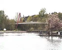 The Peter DeFazio Bridge is a bicycle and pedestrian bridge located in Eugene, Oregon, that crosses the Willamette River. The bridge was completed in 2000 and cost $2.8 million.[1]