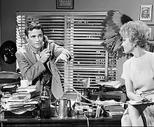 Despite his stage success, a theatrical agent advised Falk not to expect much film acting work because of his artificial eye.[18] He failed a screen test at Columbia Pictures and was told by studio boss Harry Cohn: "For the same price I can get an actor with two eyes." He also failed to get a role in the film Marjorie Morningstar, despite a promising interview for the second lead.[24] His first film performances were in small roles in Wind Across the Everglades (1958), The Bloody Brood (1959) and Pretty Boy Floyd (1960). Falk's performance in Murder, Inc. (1960) was a turning point in his career. He was cast in the supporting role of killer Abe Reles in a film based on the real-life murder gang of that name that terrorized New York in the 1930s. The New York Times film critic Bosley Crowther, while dismissing the movie as "an average gangster film", singled out Falk's "amusingly vicious performance".[25] Crowther wrote:[25]