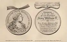 Also in 1829, Jones embarked on a tour of the northern United States with Reverend William Case and several Indian converts to raise money for the Methodist missions in Upper Canada.[15] The tour raised £600, thirty percent of the Methodist Church's annual expenditures across British North America.[40] After his return to Upper Canada, the year's annual Methodist conference named Jones "A Missionary to the Indian Tribes" on Case's urging.[21] The 1830 conference gave him the same appointment. He was also ordained as a deacon then.[41] Upper Canada's Methodists were in desperate need of money by 1831; that spring the church had been unable to pay all the salaries owed.[42] To raise money for the church, Jones travelled with George Ryerson to the United Kingdom that spring where he gave more than sixty sermons and one hundred speeches which raised more than £1000. These sermons were also held with Jones in Indian attire, which combined with his Indian name created curiosity and filled the halls, with four or five thousand attendees at his sermon for the London Missionary Society's anniversary.[43] Jones met with a number of prominent Englishmen, including James Cowles Prichard, who treated him when he fell ill in June 1831, as well as Methodist leaders such as Adam Clarke, Hannah More and Richard Watson.[44] This tour created significant public interest, and Jones met with King William IV on April 5, 1832, shortly before his return to Upper Canada.