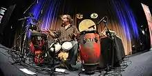 Pete Lockett is an English percussionist and recording artist. Lockett is known as a versatile and prolific percussionist, collaborating with many artists.[1] He is well-versed in percussion traditions from music cultures around the world,[2] from traditional Carnatic and Hindustani music of North and South India to traditional Japanese taiko drumming, with a style ranging from blues, funk and rock to classical, folk and ethnic and from Arabic to Electronic. His instruments include tabla, mridangam, kanjira, ghatam, vocal percussion, dholak, naal, bhangra dhol from north and south India; darabuka, req, bendir, frame-drums from the Middle East; congas, bongos, timbales and berimbau from Latin American; as well as the Irish bodhran, Nigerian udu, West African djembe, Japanese taiko, Western drum set, and many custom percussion effects and self-built instruments. He also works extensively with electronics and samplers, both live and in the studio, to create densely alternative percussion fabrics.[3]