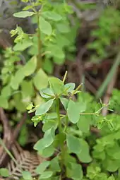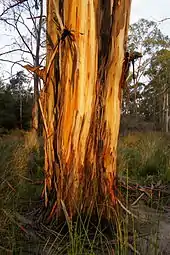 The dominant vegetation types in the Peter Murrell Conservation Area are dry heathlands and heath-shrub black peppermint woodland and forests. In the buttongrass along the east/west creek lines, small areas of peat exist.[5] Within the Conservation Area, nine major vegetation units have been identified. These include the dominant black peppermint (Eucalyptus amygdalina) coastal forest and woodland, with a heath understorey. A small area of buttongrass also exists along Buttongrass Creek.[5][6][7] Inhabiting the down-slope areas within the Conservation Area are damper vegetation types.