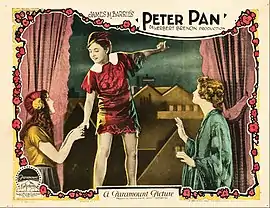 Peter Pan is a 1924 American silent adventure film released by Paramount Pictures, the first film adaptation of the 1904 play by J. M. Barrie. It was directed by Herbert Brenon and starred Betty Bronson as Peter Pan, Ernest Torrence as Captain Hook, Mary Brian as Wendy, Virginia Browne Faire as Tinker Bell, Esther Ralston as Mrs. Darling, and Anna May Wong as the Native American princess Tiger Lily.[1][2] The film was seen by Walt Disney, and inspired him to create his company's 1953 animated adaptation.[3]