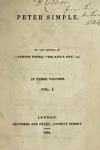 Peter Simple is an 1834 novel written by Frederick Marryat about a young British midshipman during the Napoleonic wars. It was originally published in serialized form in 1833.