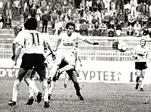 In 1984 at 21 years of age, the North American Soccer League ceased operations and Skouras made the trip to West Germany to continue his ambitions and living. After multiple trials at Bundesliga clubs, Skouras finally landed a contract with Karlsruhe Sport Club. After observing Skouras, Werner Olk the Karlsruhe manager gave the "green light" for the acquisition of Skouras which officially made Skouras the "First American" to sign a European First Division contract. Ironically and in a matter of days, Skouras was transferred to Greek Super League power Olympiakos Piraeus with the confirmation of former Netherlands and current Manager Georg Keßler and United States National Team Manager Alketas Panagoulias. Skouras spent one year at Olympiakos (December 1984 – 1985) playing in a few number of matches. However, being selected week in and week out in the squads of 16 was not a simple feat in such a "massive club" as Olympiakos. Returning to the United States in 1986 and signing for a short period with the San Jose Earthquakes of the American Professional Soccer League (APSL), PAOK Thessaloniki of the Greek Super League signed Skouras under the direction of former Dutch National Team Manager Thijs Libregts. Due to Skouras' physical style of play, injuries plagued Skouras throughout his stay in the Greek Sub-Capital.[1] Skouras continued his footballing career in the Greek Super League with Diagoras Rhodes for the 1987-88 season,[2] and in the Greek Second Professional Division with Panseraikos F.C. who in 1988–89 were promoted to the Greek Super League under the technical guidance of Athanasios Dokas. In 1990, Skouras returned to the United States and the Los Angeles Heat of the American Professional Soccer League. After a few number of matches, injury again plagued Skouras with a severely torn hamstring and would bring his playing career to an end. Skouras was 27 years of age.