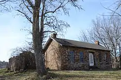 The Peter Smyth House is a historic house at 1629 Crossover Street in Fayetteville, Arkansas. Built in 1886, it is a regionally rare example of a small stone cottage built in a traditional central hall plan. The house is built out of coursed sandstone, and has finely-chiseled lintels and sills for the openings. The front facade is five bays wide, with a center entry flanked by four sash windows. There two chimneys just inside the outer side walls at the peak of the side gable roof. A stone ell of antiquity similar to that of the house is attached to the rear; it is uncertain whether it was built as an integral part of the house, or added later.[2]