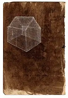 Starting in 2003, Peter Van Gheluwe begins digging into his own history. He studied the life of his father, who died when Van Gheluwe was 20 years old and spent years in a labor camp in Germany during World War II. Some drawings about this theme were shown in the exhibition "Zie tekening" in Lier.[9] He continues researching the horror and dehumanization and undertakes a few study trips to concentration camps in Germany and Poland, leading to many drawings, sketches, photographs and film clips. This search leads to the art book "Hidden View" in 2008, with introductory texts by Volkmar Mühleis and Luc Martens and an exhibition in Galerie Negenpuntnegen in Roeselare.[10][11] Light continues to have a prominent role in these representations of horror.