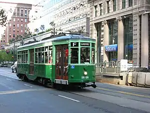![]() This ex-Milan car, now operating in San Francisco, carries the two-tone green color scheme used by Milan from 1926 to the 1970s. | |