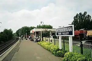 Peterborough Nene Valley is a station on the Nene Valley Railway and is the current eastern terminus of the line.[1] Situated adjacent to Railworld, the station can be found west of the East Coast Main Line, close to the Junction of London Road and Oundle Road.