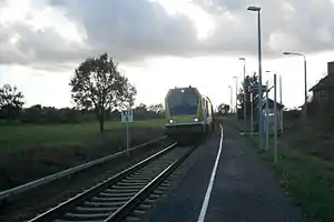 Petershagen (Uckermark) station is a railway station in the municipality of Luckow-Petershagen, located in the Uckermark district in Brandenburg, Germany.