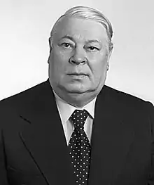 After the death of Antanas Sniečkus in 1974, Griškevičius succeeded him as the First Secretary of the Lithuanian Communist Party. He was also a delegate of the Supreme Soviet of the Lithuanian SSR (since 1965), delegate of the Supreme Soviet of the Soviet Union (since 1974), and member of the Central Committee of the Communist Party of the Soviet Union (since 1976).[1] Griškevičius was described as a Brezhnevite,[3] conservative and "mediocre apparatchik", who opposed perestroika and especially glasnost.[4] He supported suppression of Lithuanian history and cultural heritage, replacing them with Soviet propaganda.[5]
