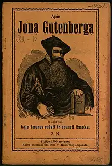 Many of Vileišis' books contained practical and specific agricultural advice and guides. In 1883, his first publication in East Prussia, was agricultural advice written by Ignacy Łyskowski and translated from Polish by Vincas Pietaris.[130] Vileišis also published booklets on cattle (1884), on gardens, hops, and bees (1885),[131] cows and milk (1892), horses and their illnesses (1893), potatoes (1900), oats (1902), etc.[132] In 1902–1903, he published three textbook-type booklets about selected crafts (including lathing, metal working, brush, wheel, and rope making, tanning of leather and furs).[133] He also published basic guides to laws relevant to peasants (two booklets in 1886 and 1887).[132] Vileišis commissioned three further legal booklets from Antanas Smetona in 1902–1903. He further sponsored the publication of 17 medical booklets by his physician brother Antanas.[134]