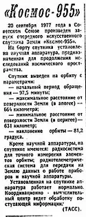 - "Soviet UFO due to secret launch". Science News. 112. 8 October 1977.