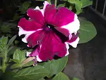 Petunia × atkinsiana (synonym: Petunia × hybrida) is a Petunia plant "nothospecies" (hybrid), which encompasses all hybrid species of petunia between P. axillaris and P. integrifolia.[1] Most of the petunias sold for cultivation in home gardens are this type and belong to this nothospecies.[2]