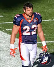 Following an injury to Ryan Torain in the Broncos 34–30 comeback road victory over the Cleveland Browns, Hillis was named Denver's starting running back. His first start at the position netted him 44 yards and two touchdowns on only 10 carries as part of a 24–20 road victory over the Atlanta Falcons.[7] Two weeks later, he recorded his first 100-yard rushing game with 129 yards and a touchdown on 22 attempts in a 34–17 road victory over the New York Jets.[8] The performance earned Hillis multiple honors including being named Diet Pepsi NFL Rookie of the Week as well as FedEx Ground Player of the Week alongside Broncos quarterback Jay Cutler, who was named NFL Air Player of the Week.[9] The string of victories and accolades built up anticipation among Broncos faithful for Hillis to continue as running back for the rest of the season. However, the season already plagued with running back injuries continued, with Hillis suffering a season-ending injury in a 24–17 home win over the Kansas City Chiefs. Coming down from an acrobatic catch of a Cutler pass with his right foot planted, Hillis was hit from both sides by Chiefs' free safety Jarrad Page and cornerback Brandon Carr. The hit doubled Hillis over, causing a 2–3 inch tear in his right hamstring behind the knee, which forced him to miss the rest of the season.[10] Despite his limited playing time, Hillis ended the 2008 season as the Broncos' leading rusher with 343 yards and five touchdowns and was expected to return as a significant offensive presence for the 2009 season.[11]