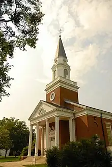 The Pfeiffer Junior College Historic District is a national historic district encompassing 14 contributing buildings and 1 contributing structure on the campus of Pfeiffer University. They include Georgian Revival-style brick academic buildings erected between 1923 and 1948. Notable buildings include the Administration Building (1923, remodeled in 1936), Rowe Hall (1935), Merner Hall (1935), Goode Hall (1935), "Practice Home" (1941-1942), Cline Hall (1935), President's House (1935), Jane Freeman Hall (1937), Henry Pfeiffer Chapel (1941-1942), Delight and Garfield Merner Center (1941-1942), Washington Hall (1941-1942), Mitchell Gymnasium (1948-1950), and the Campus Gates (1935).[3]